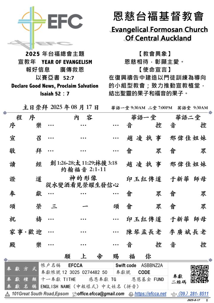 Posted on06.18 EFCCA週報2023(一堂|聖洗禮) 瀏覽…