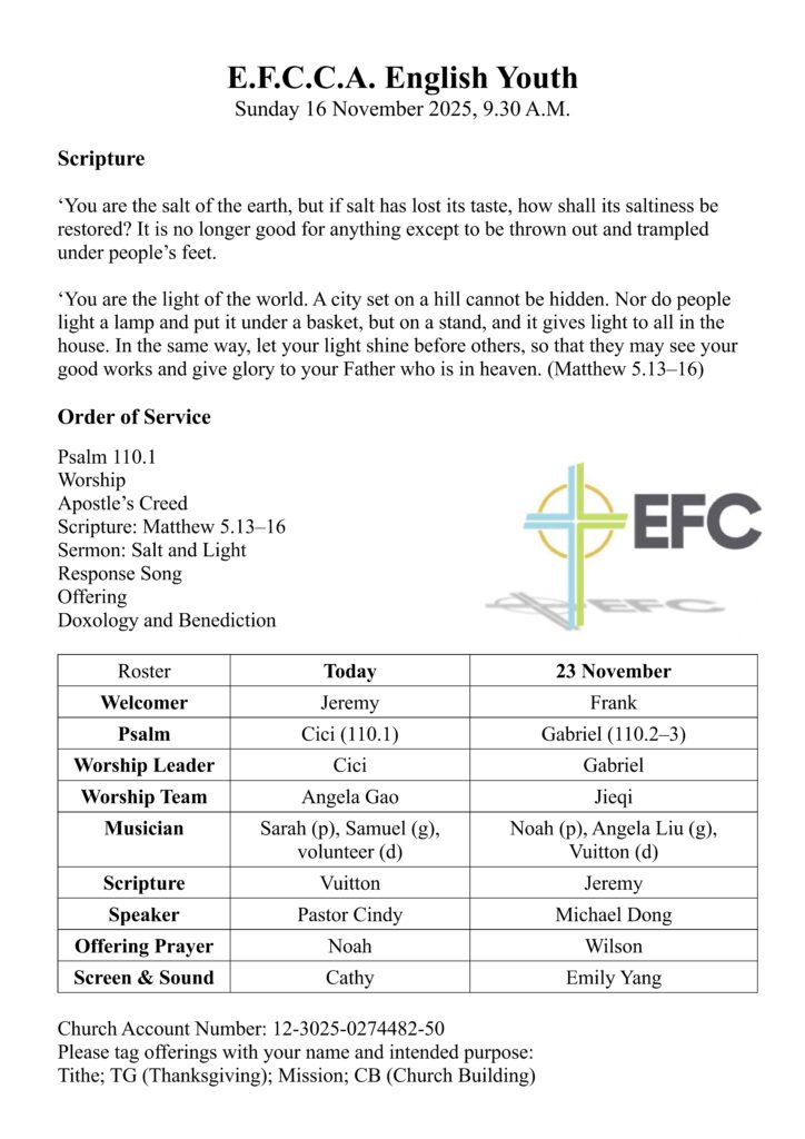 Jesus sees you, loves you, and sends you—EFCCA English Youth Worship