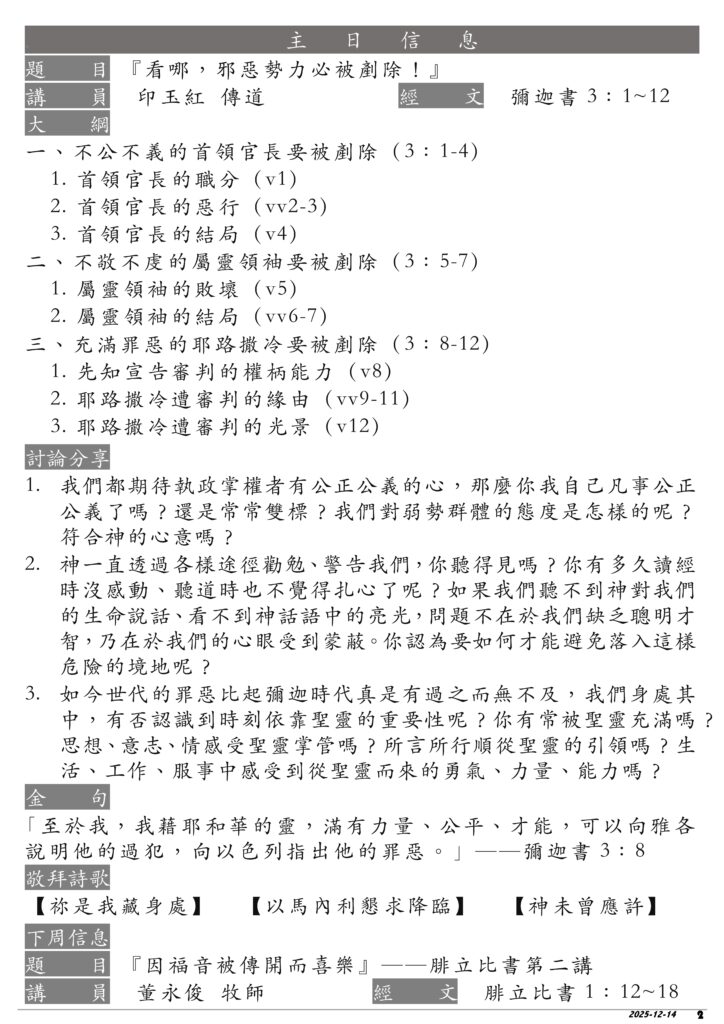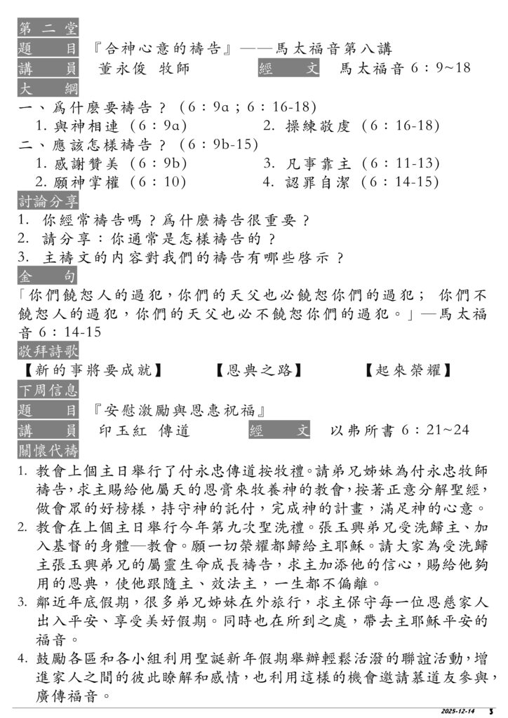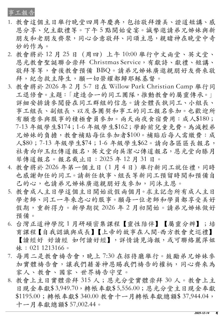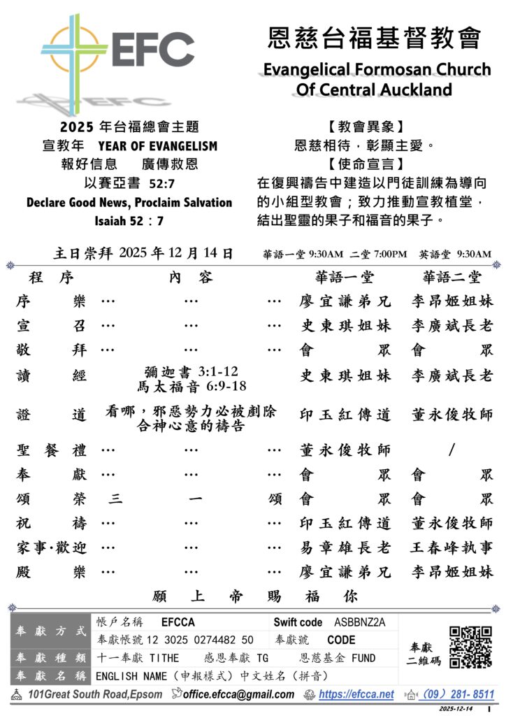 12.14 EFCCA周報2025 聖餐禮 晚堂4周年感恩禮拜