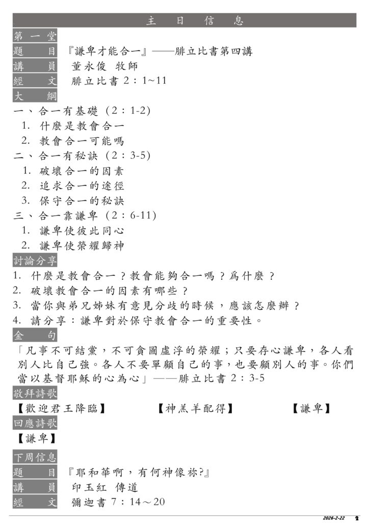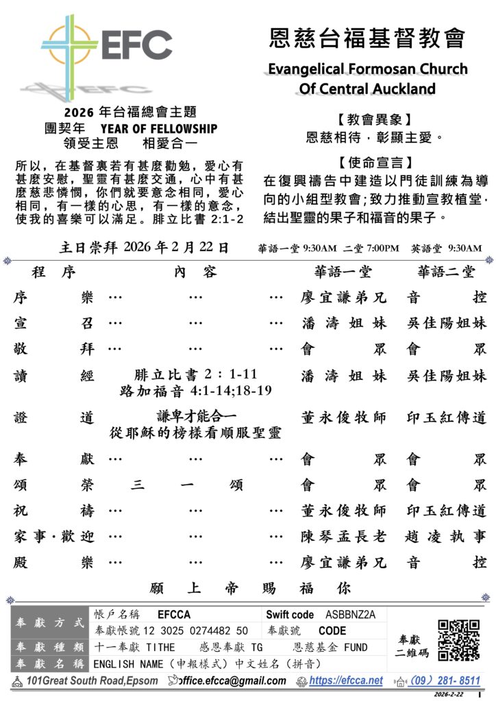 2020年02月16日恩慈週報(卜倩宇姐妹司禮)