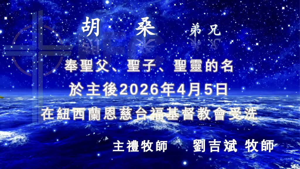本教會11月16日主日舉行了今年第八次聖洗禮。葉文青、馬立新兩位姊妹受…